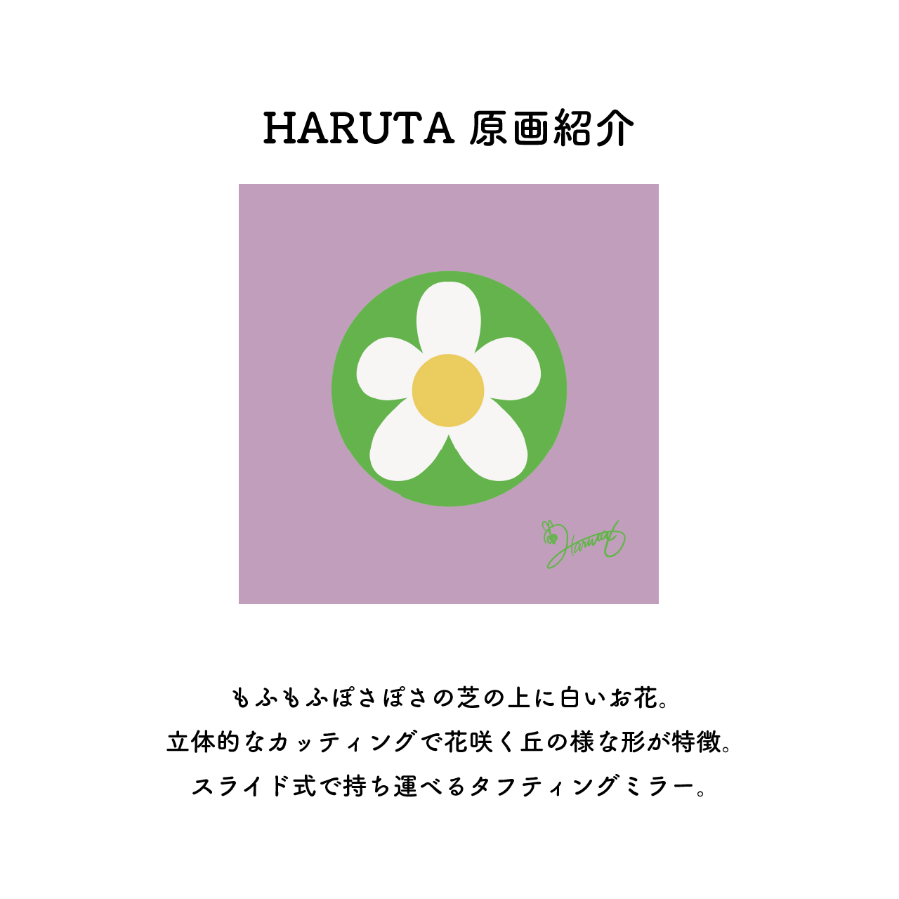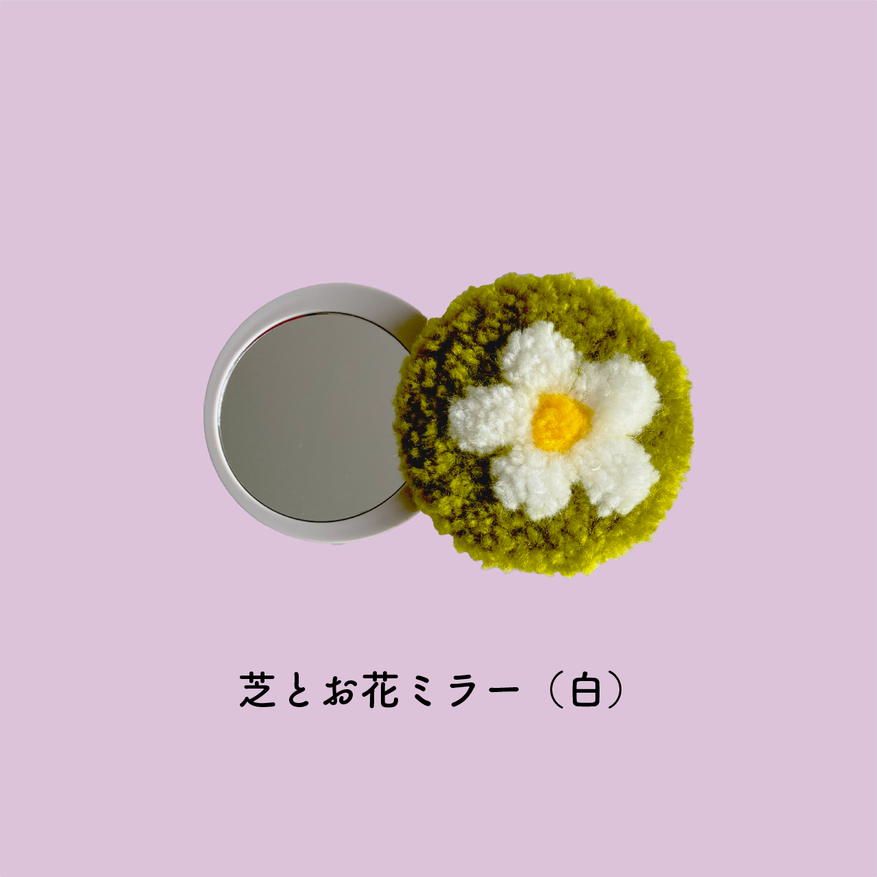 ⚫︎スライドミラー【芝とお花】:もふもふぽさぽさの芝の上に咲くお花をイメージしたスライドミラーです。立体的なカッティングで花咲く丘の様な仕上がりです。